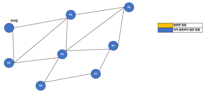 R2정점을 방문함.- 우리집 정점과 연결된 정점