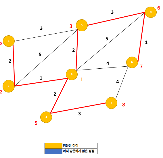 - 방문하지 않은 정점이 남아 있다면 ②단계로 이동함.