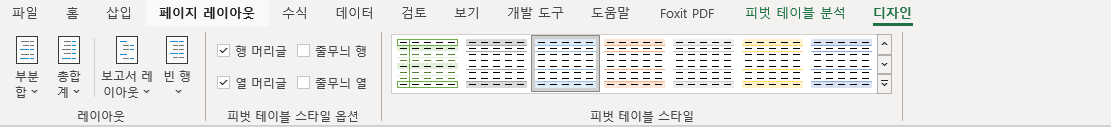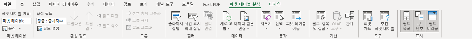 - 피벗 테이블이 작성되면 자동으로 <피벗 테이블 도구>가 표시됨.