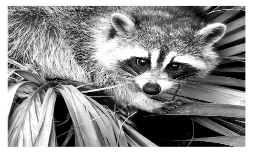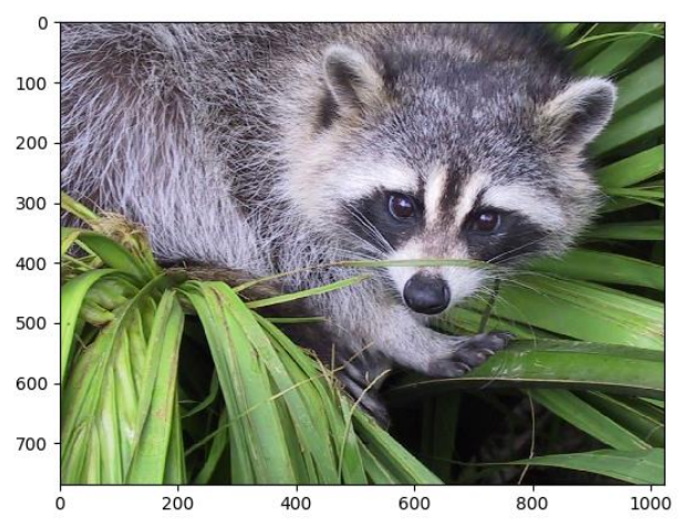 - face() 함수를 이용해 최대 255, 최소 0, 평균 110.16274388631184의 요소를 가지는 배열 객체인 미국너구리 이미지를 얻을 수 있다.