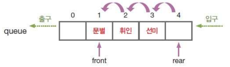 큐 상태 ==> [None, '문별', '휘인', '선미', None]