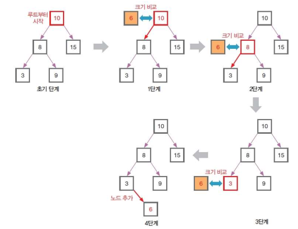 이진 탐색 트리에서 데이터를 삽입하는 일반적인 형태는 다음과 같다.