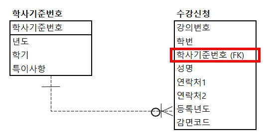 (단, 학사기준과 수강신청은 조인하여 정보를 조회할 업무가 많음.)