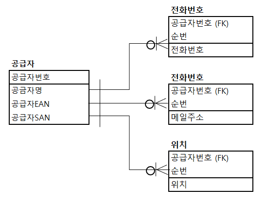 - 공급자의 데이터는 1000만건 이상의 대량 데이터를 가진 테이블임. - 전화번호, 메일주소, 위치는 자주 변경이 될 수 있으며, 데이터 조회를 할 때는 항상 최근에 변경된 값을 조회하게 됨.