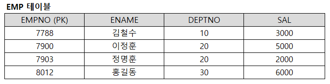 insert into emp(empno, ename, deptno, sal) values(8014, '이정훈',40, 4000)