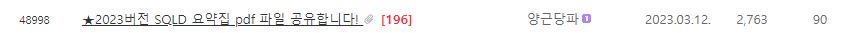 - 기출 (복원) 문제, SQL 관련 질문 & 답변, 요약집 다운로드 등 많은 자료를 얻을 수 있는 곳이다.